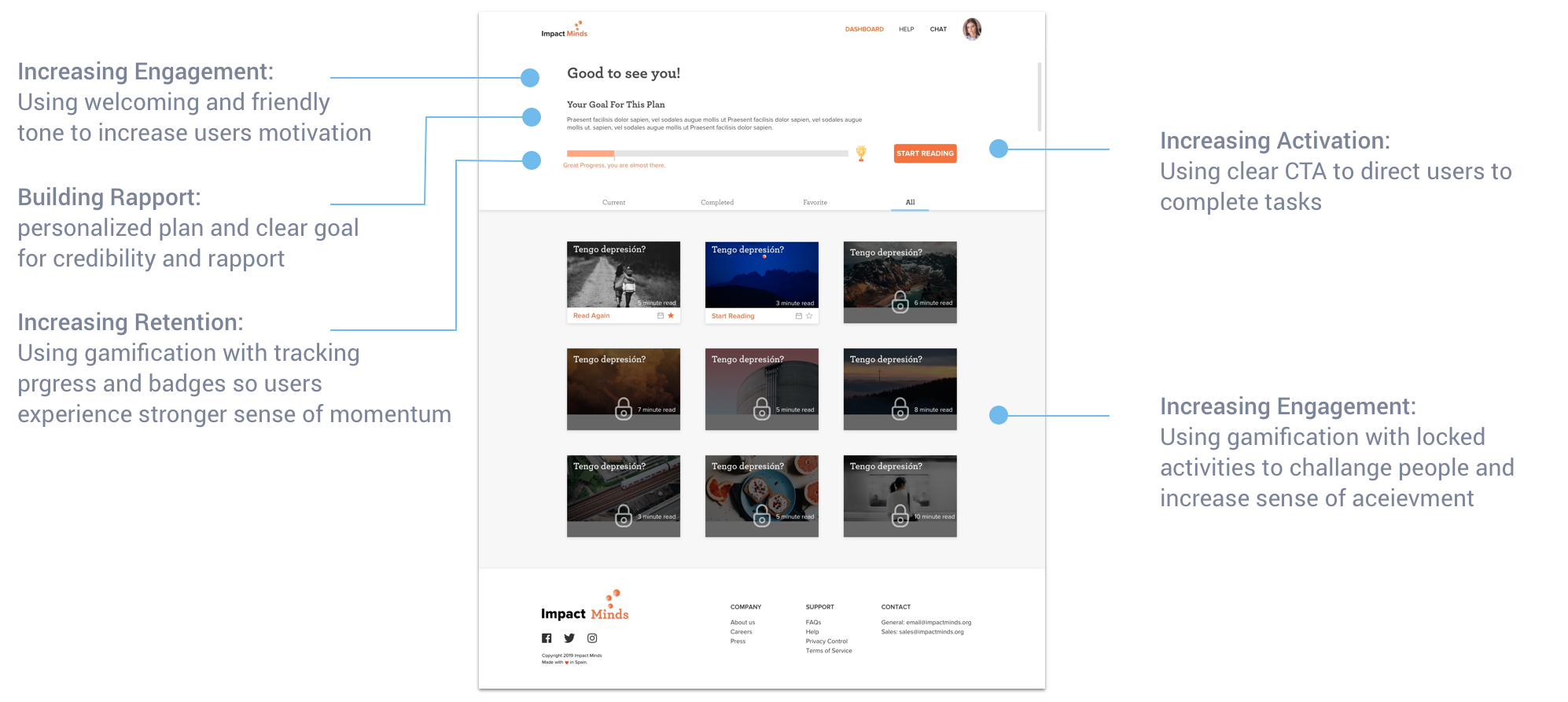 Using gamification like locked activity cards, badges to motivate users and increase engagement and retention.