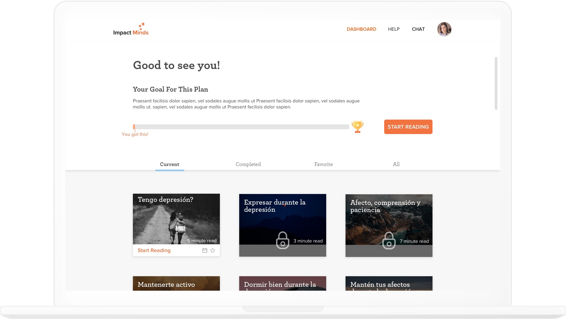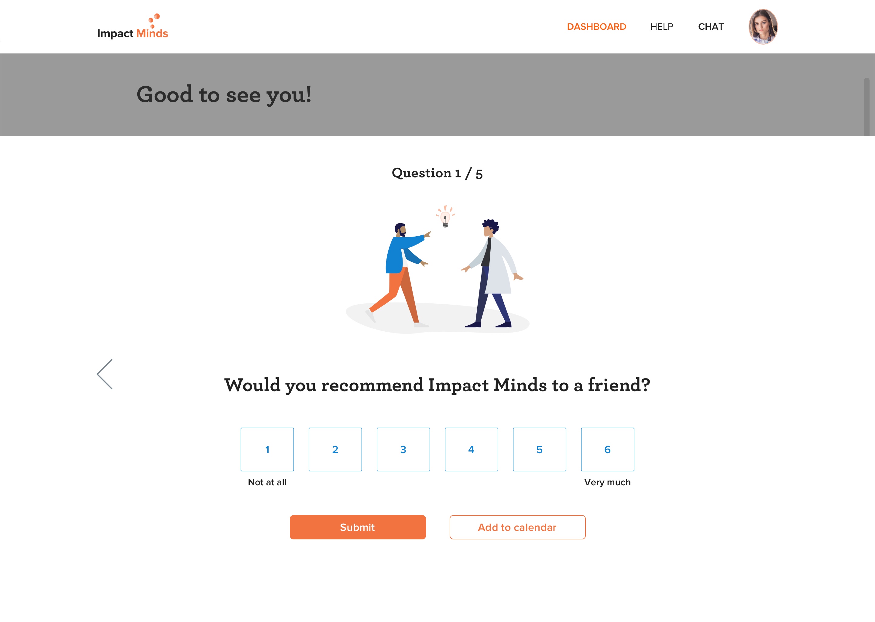 We reviewed various mental health and well-being web experiences to gain insight on commonly used design patterns, color themes and strategies to help guide design decisions moving forward