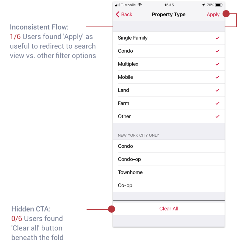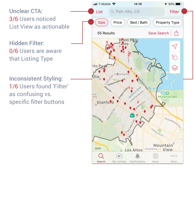 To help guide my research, I wanted to begin by gaining a better understanding of the behaviors and motivations of Realtor users so my usability tests could be more accurate. I interviewed friends to learn more about their house search habits and prior experiences with real-estate apps.
