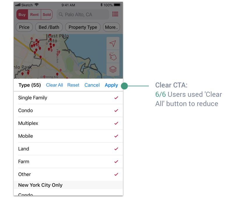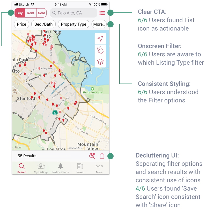 Redesigning the search and filter components with small improvements like using on-screen filter and consistent styling for CTAs and icons, improved the completion rates and decreased task time for users. Most important, it affected their experience positively to increase retention rates.